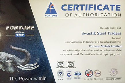 "Swastik steel traders" is appointed as authorised distributor of "Fortune TMT ".